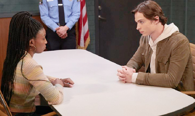 Spencer Cassadine (Nicholas Alexander Chavez) can’t believe his eyes. First, his grandmother Laura Collins (Genie Francis) finally paid and visit and now Trina Robinson (Tabyana Ali) is right in front of him. What could be better? He had goven up on her ever coming to see him while he was in Pentonville and they definitely have a lot to say to one another.